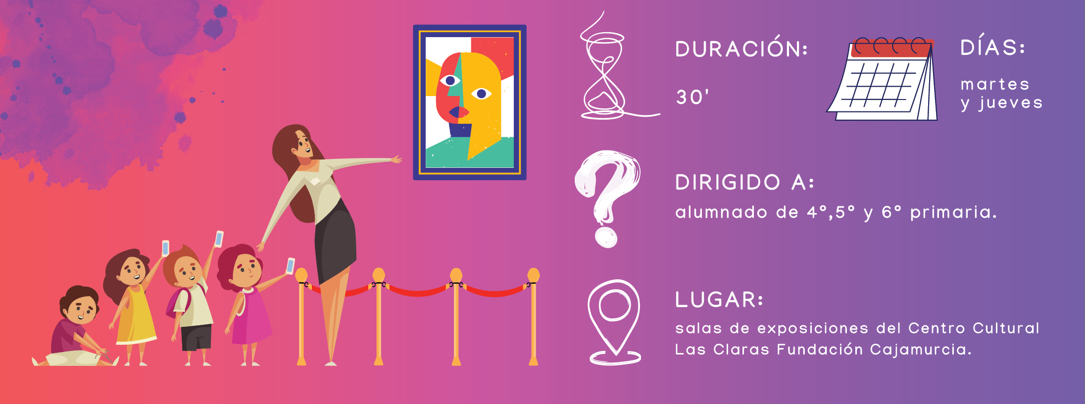 Las sesiones estarán dirigidas por una experta en Arte, que guiará a los alumnos en un recorrido ameno y enriquecedor, transformando cada exposición en una experiencia educativa inolvidable.